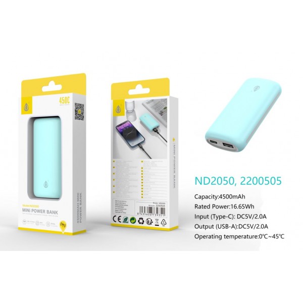 PowerBank 4500mAh/16.65Wh, 1 Entrada Type-C y 1 Salida 1USB-A