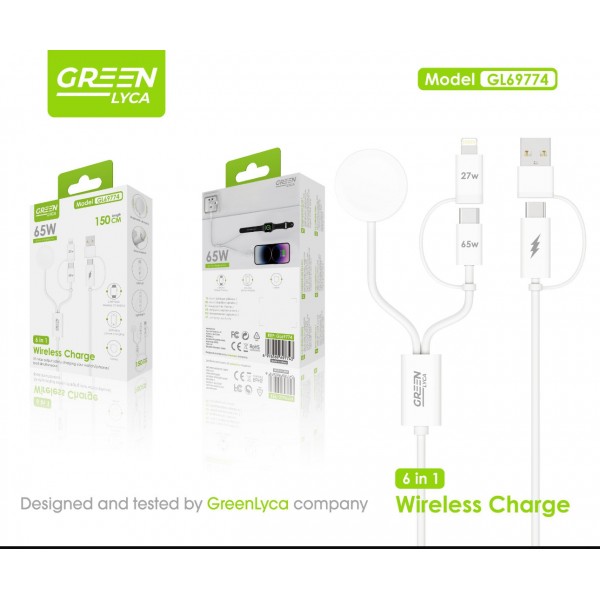 Cargador inalámbrico de reloj+cables datos Type-c+Lighting, 60W, 1.5M