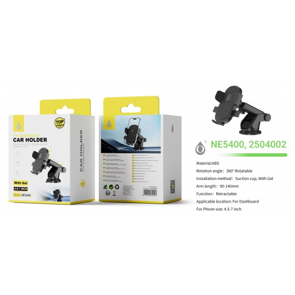 Soporte universal de movil con gel para Salpicadero y Parabrisas , Brazo Extensible 90-140