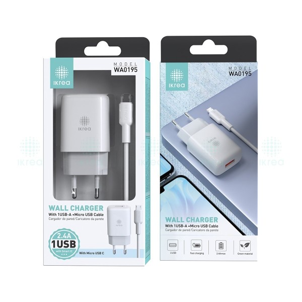 CARGADOR SMART IC CON CABLE MICRO USB 2.4A