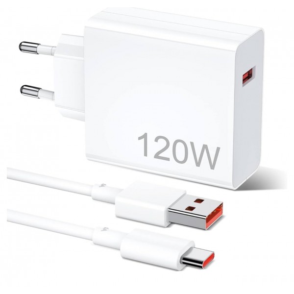 Cargador carga rápido para Xiaomi, 120W, con cable USB-A a Type-C