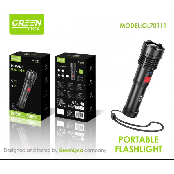 Linterna en 5 modos, lance 500M, 15W, 1500mAh