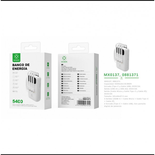 Power Bank MX0137 5400mah 5V2A with 4 cable ABS+PC