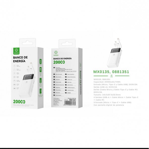 Power Bank MX0135 20000mah 5V2A with 4 cable ABS+PC