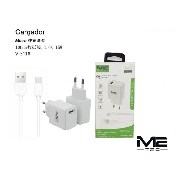 Cargador con Cable Micro USB, 3.0A, 15W, 1M